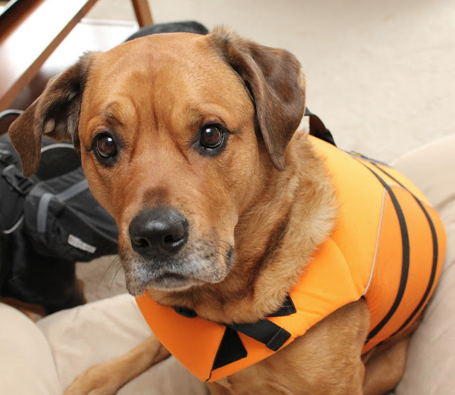 Of course Chloe was sad that Sasha was the only one who was getting new clothes every day, so I dug out her lifejacket just for a treat. Instant happy dog. Trust me, this is her happy face.
