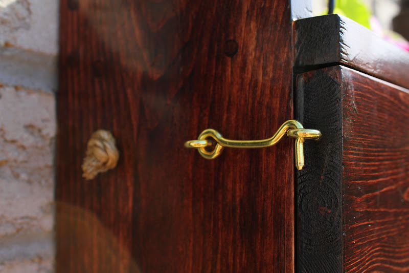 Ours is built of pine, stained Minwax red mahogany, and I gave it three coats of polyurethane to protect it from the Canadian weather (Update: it's already been rained on several times and is holding up great!)