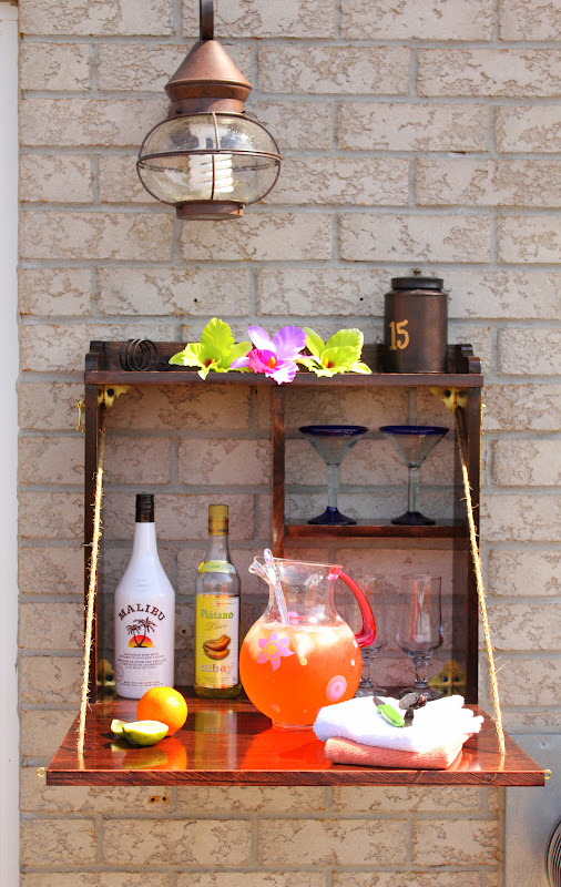 Oooh! I love this! We've been looking for ideas for bar storage on our patio too...this is a great idea! Pinning away....