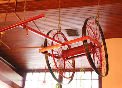 It is an old converted firehall and they kept as many of the original items and building materials as they could when they were doing the renovation. "Pufferbelly" is the nickname given to the old steam pumpers from the 1800's. The woman working the door had been there for over 20 years and her father and uncle had been firemen at that station before it was converted.