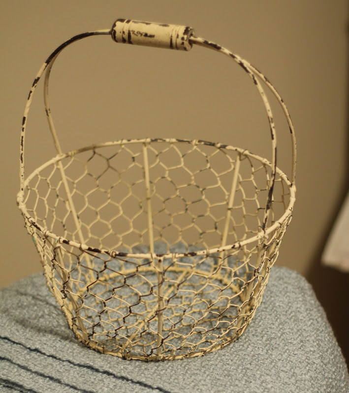 This chicken wire basket called out to me just as I was headed for the cashier. It has just the right amount of chippiness - I'm not even going to paint it. I have some mason jar lanterns that match it perfectly - I'll have to find a place for them to all live in harmony.