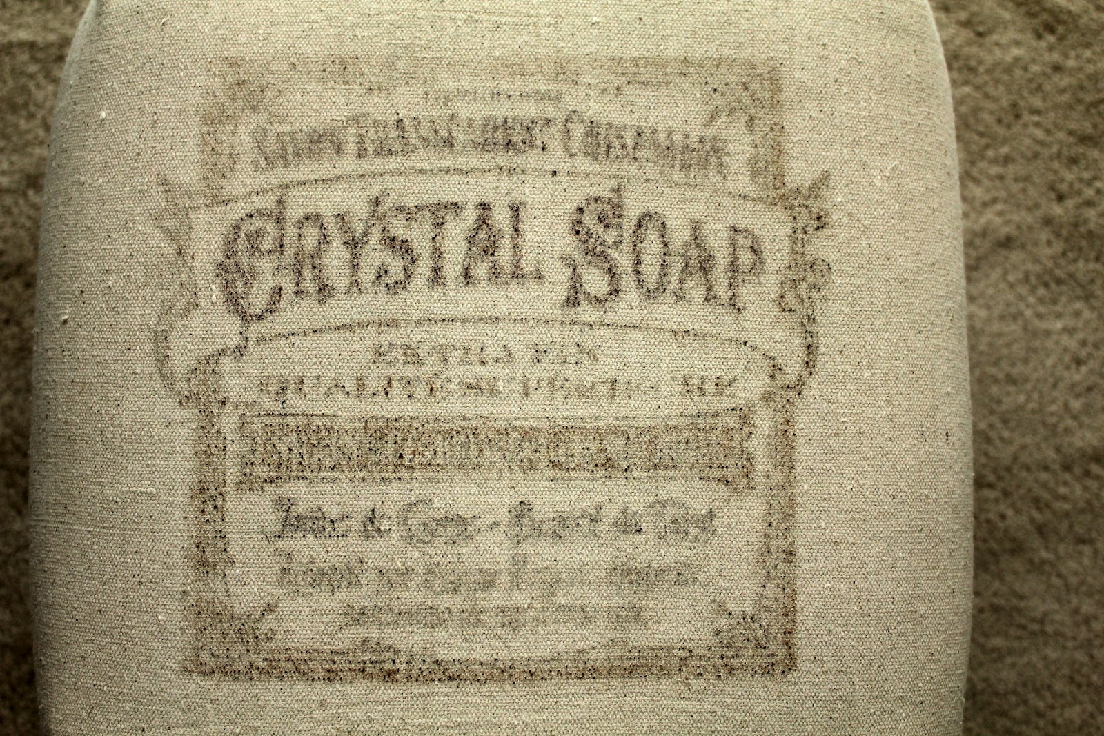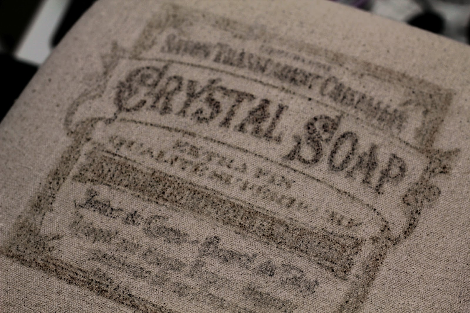 You'll want to dampen the fabric first, but just slightly damp - if it's too wet your image will bleed into the fabric. Not all of the lettering is legible, but the main words are and that's good enough for me! Those kind of imperfections just make it look worn and original.