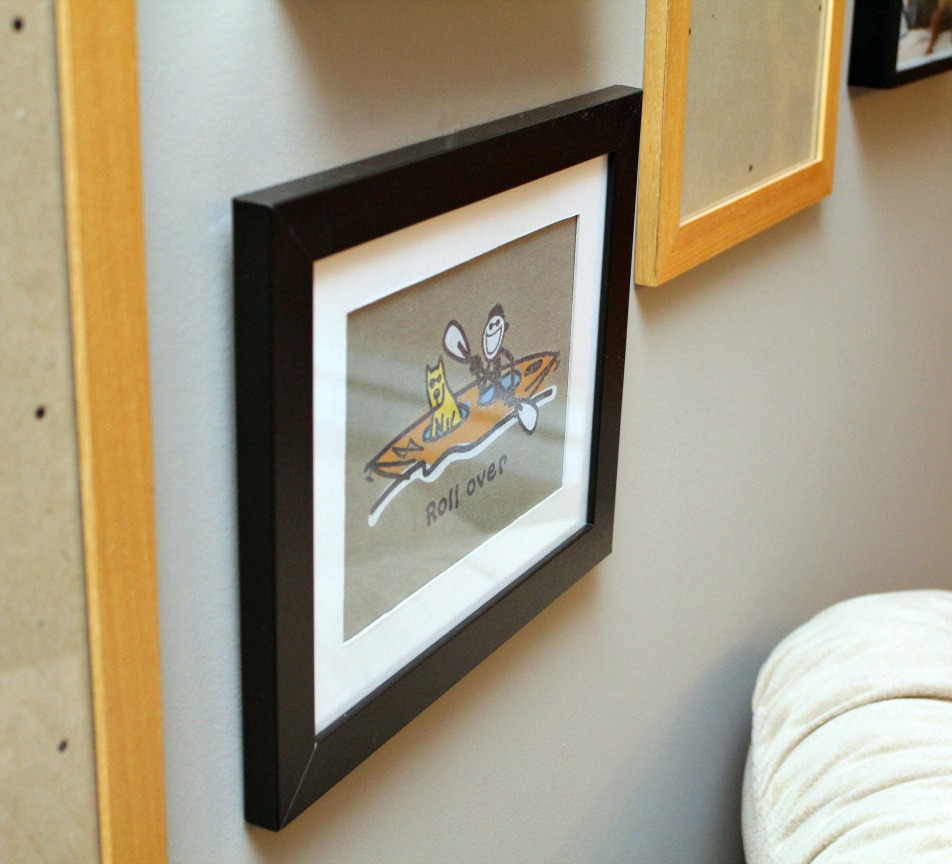 I decided to turn it into framed art so he could have it forever. I already had a frame but it didn't have a mat, so I made one from the solid mat in another frame that wasn't being used. The first thing I did was measure the width and height of the graphic so I knew how big to make the opening.