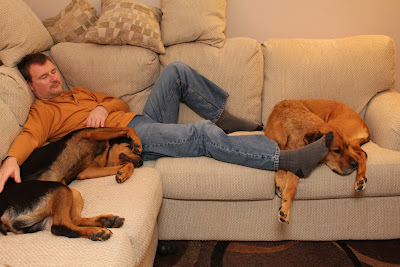 Another thing that's always a pain in the butt with large couches is that electrical outlets end up behind the couch where you can't get to them easily. Tom came up with the idea to add an outlet to the table top, one on each side. They are just standard outlets like you'd have on your wall, built flush into the top of the table, with a cord to plug it into the wall outlet below. Clever, hunh? I swear I liked the idea so much it brought tears to my eyes. I like to use my laptop downstairs and I hate running the power cord across the room because I'm always afraid of the dogs tripping over it and yanking the laptop out of my hands. Now I can plug it in right behind me. And we can add a small lamp if we need to.