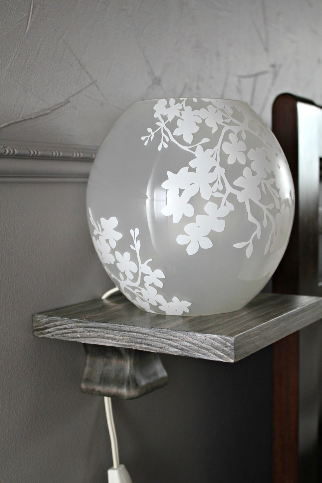 I held the lamp and cord in place while Tom mounted the shelf to the wall. Luckily he hit studs both times so we didn't have to use the anchors, and we don't have to worry about the shelves falling down. The lamps aren't that heavy anyway so I don't think there's any danger.