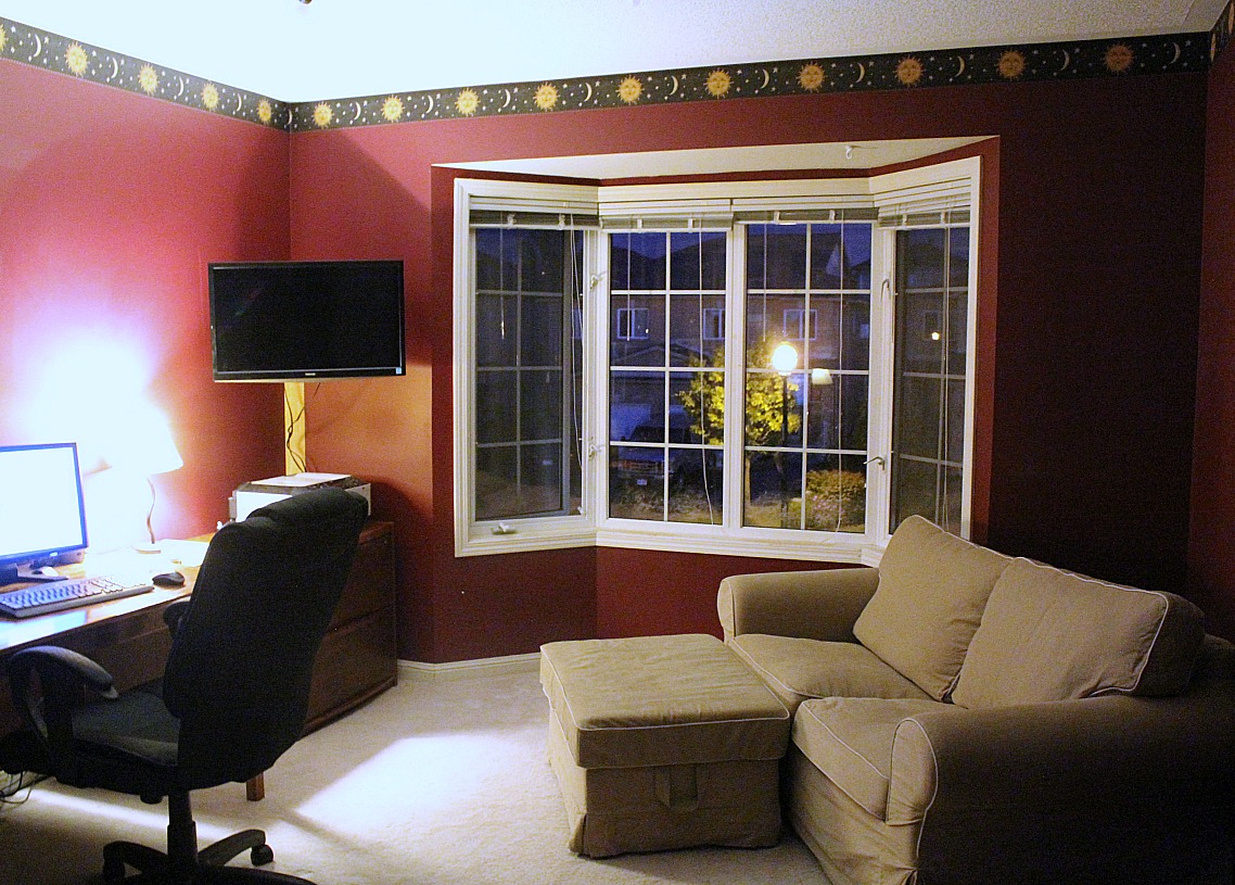 This one shows off the colour the best. And with the new white trim. Isn't white trim just the greatest thing? Tom recommended we keep the couch in front of the window when we're done - so that we can be comfortable while we spy. Unfortunately it also makes us a little obvious. Less like spies, more like gawkers.