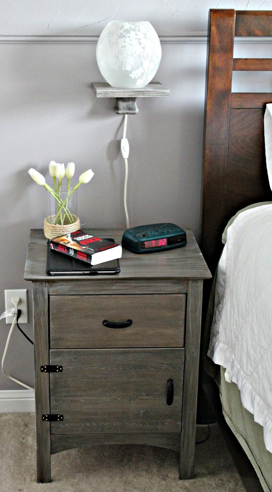 The lamp has an on/off switch on the cord that hangs at the perfect height when you're laying in bed. No more digging behind the nightstand in the dark, trying to find it and knocking everything all over the place!